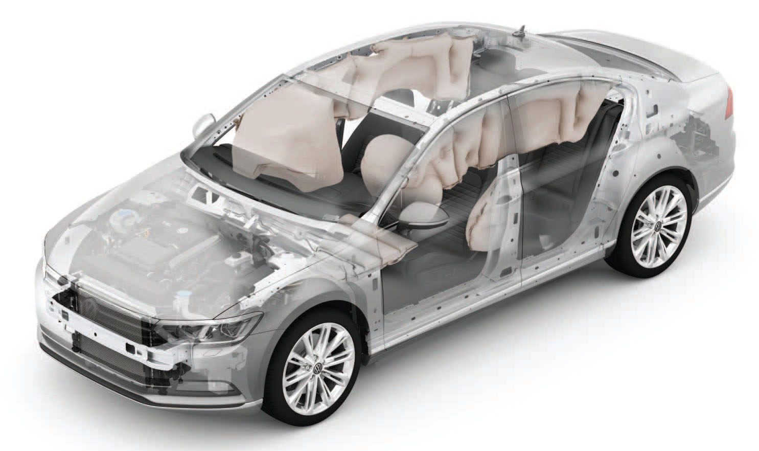 Az új Passat karosszériaszerkezete 21 kg-mal könnyebb lett az előző modellnél. Emellett szigorúbb követelményeknek felelt meg, és nagyobb méreteket ért el mind a limuzin, mind a Variant esetében.