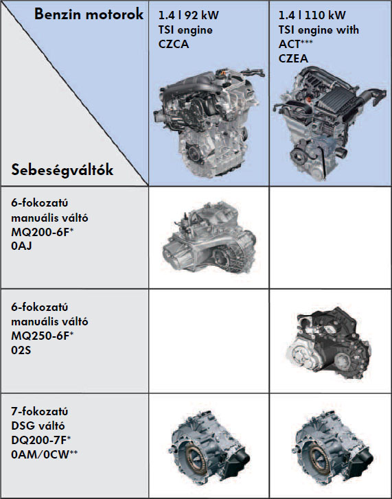 Motor és váltókombinációk Benzin motorok